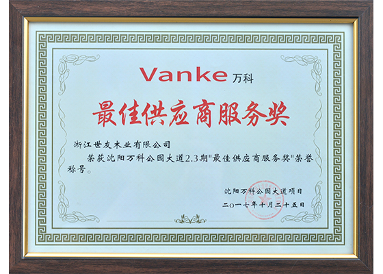 沈陽萬科:最佳供應(yīng)商服務(wù)獎